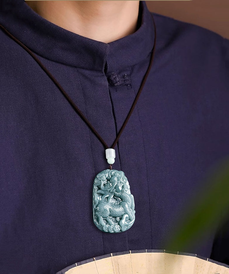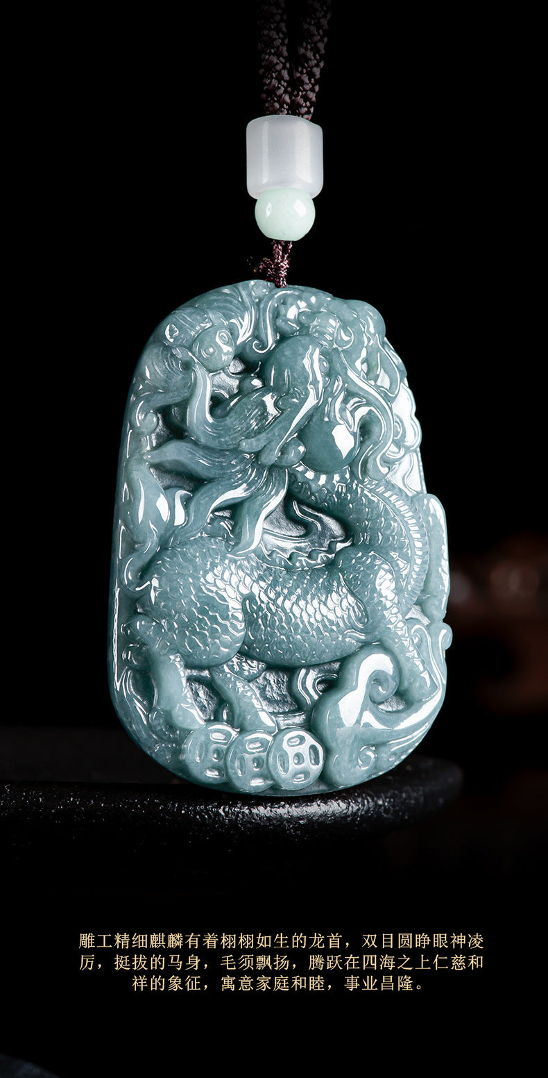 Auspicious Kirin Natural Grade A Blue Jadeite Pendant – Ice Variety Jade Necklace for Men